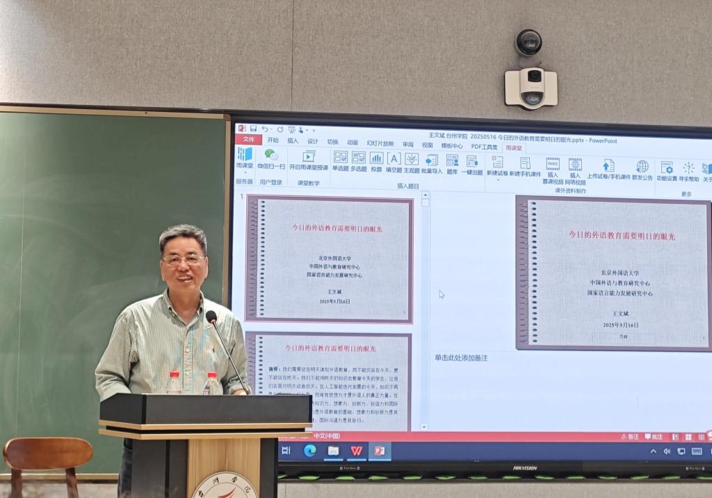 随后,他聚焦人工智能时代的外语教育变革,从“专业素养与思想力”“创新力与创造力”两大维度展开论述,结合大量实例强调唯有以未来眼光审视当下教育模式,突破传统思维定式,主动拥抱创新,方能培养出适应时代需求的外语人才。