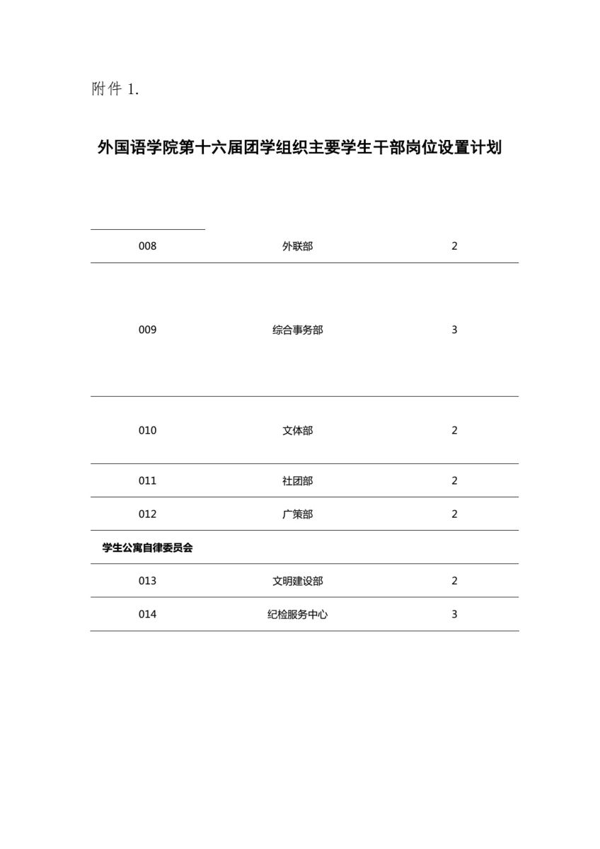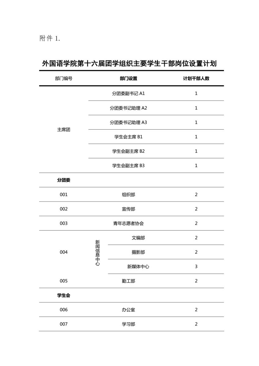 附件1. 意昂第十六届团学组织主要干部岗位设置计划