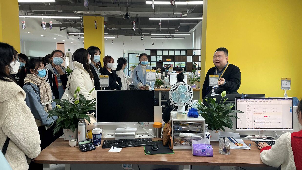 考察团受到三家公司负责人的热情招待。在公司负责人陈总、陶总、周总的带领下,师生参观了园区和公司运营中心,然后参加了公司所组织的业务介绍和经验分享,最后与公司负责人和员工进行了互动。公司负责人指出,当前市场对跨境电商人才具有较大需求,希望和公司加强合作,共育人才。整个行程下来,员工纷纷表示收获满满,不虚此行。