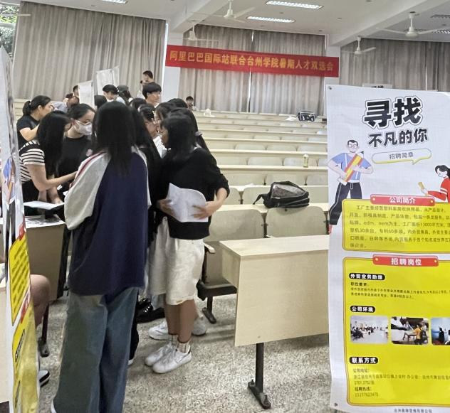 双选会共吸引了双马塑业、临海市亚翔进出口有限公司、台州奈科特出口有限公司等17家企业参会,提供岗位近50个,涵盖外贸业务助理、外贸跟单助理、运营助理、跨境直播助理等岗位;五十余位商务英语和英语专业的员工参加了双选会。