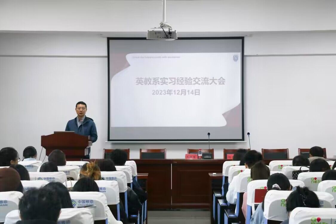 12月14日中午,意昂于4204报告厅,举行英语教育系实习经验交流大会。此次大会由英语教育系主任马俊周主持,20级教育实习各小组代表分享经验,21级英语教育专业员工参加。
