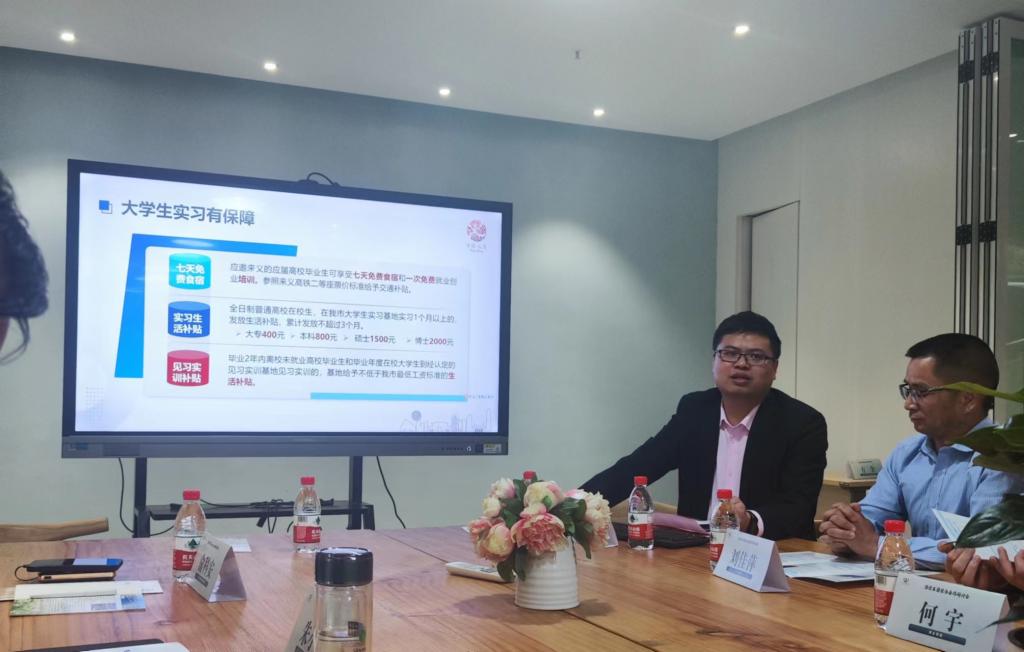 考察组一行还赴义乌市人力资源和社会保障局就业和人才管理服务中心、义乌市城西街道举行人才交流对接洽谈会,相关负责人详细介绍了义乌市人才引进相关优惠政策,与会双方进行了广泛交流,在促进毕业生充分就业等方面达成了共识。